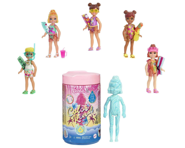 With 6 surprises in 1 package, the Barbie Chelsea Color Reveal dolls deliver all kinds of delight -- kids will love revealing the Sand and Sun Series