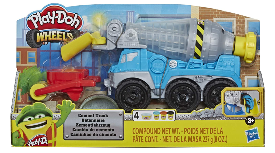 Play-Doh Wheels Cement Truck Toy for Kids Ages 3 & Up with Non-Toxic Cement-Colored Buildin' Compound Plus 3 Colors